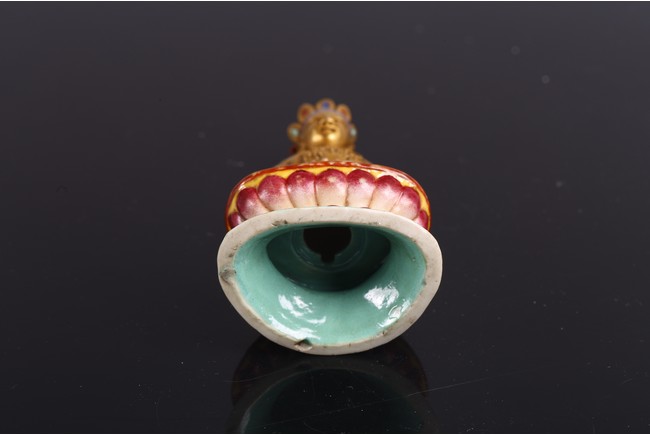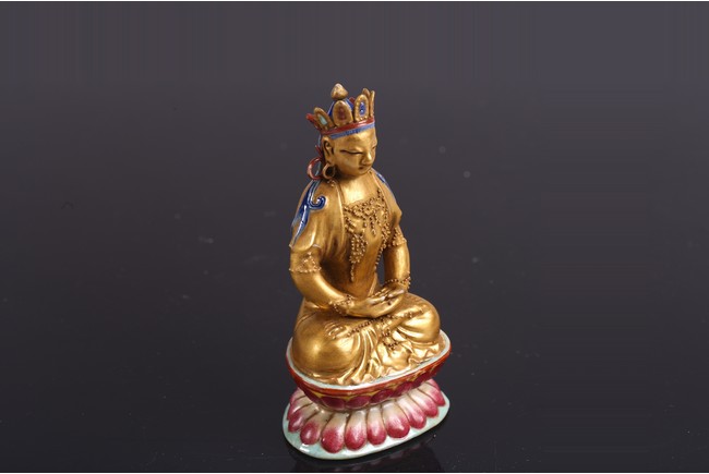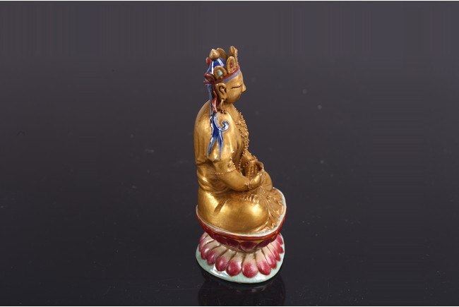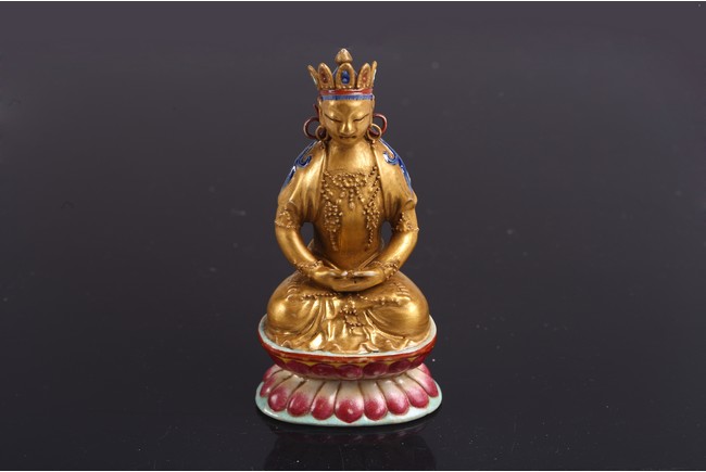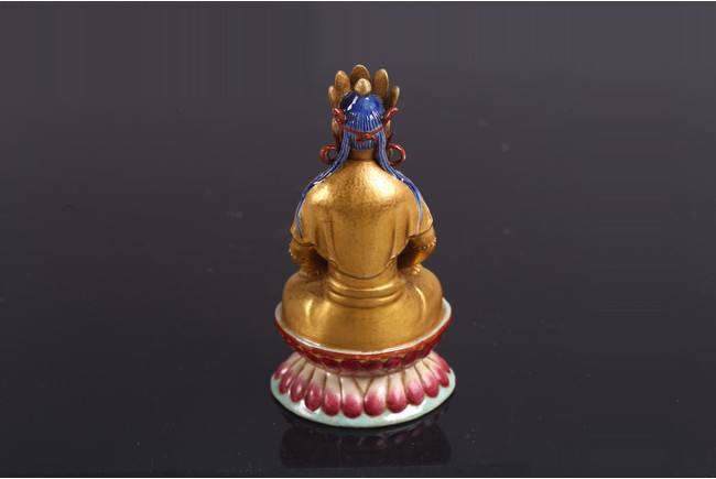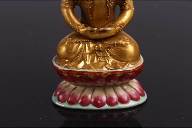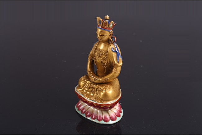 The figure is shown seated in vajra paryankasana on a double-lotus base with the hands folded in dhyana mudra. Qing Dynasty period, 19th century.