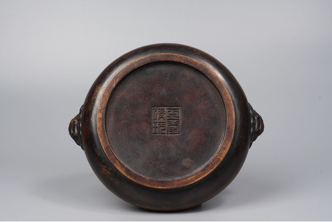 A CHINESE BRONZE CENSER 清 玉堂精玩款 銅雙獸耳爐