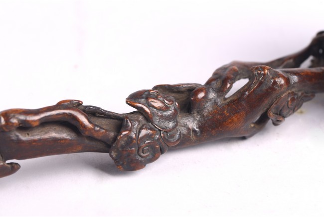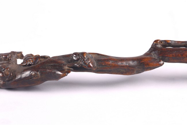Provenance: Property from a private collection, Orange, California. Acquired from a private collection in Laguna Beach, California. 來源:南加州橙縣私人收藏, 得於南加州拉古拉海灘私人收藏 可參考台北故宮藏清代宮廷沉香如意,文物圖檔編號:K1D001570N000000000PAB。 Refer to a Qing Dynasty agarwood ruyi scepter in the collection of the National Palace Museum in Taipei, museum number K1D001570N000000000PAB.