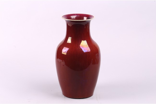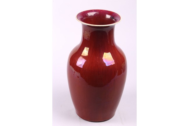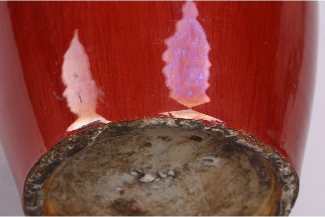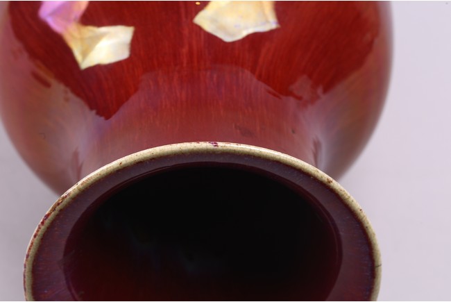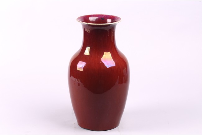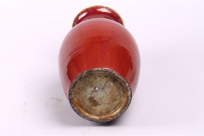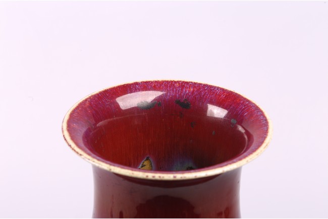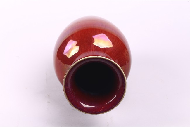 A CHINESE FLAMBE RED GLAZED VASE 清 窯變紅釉觀音瓶