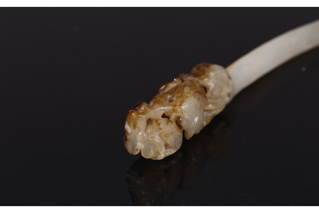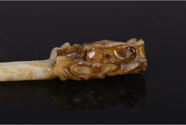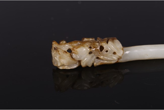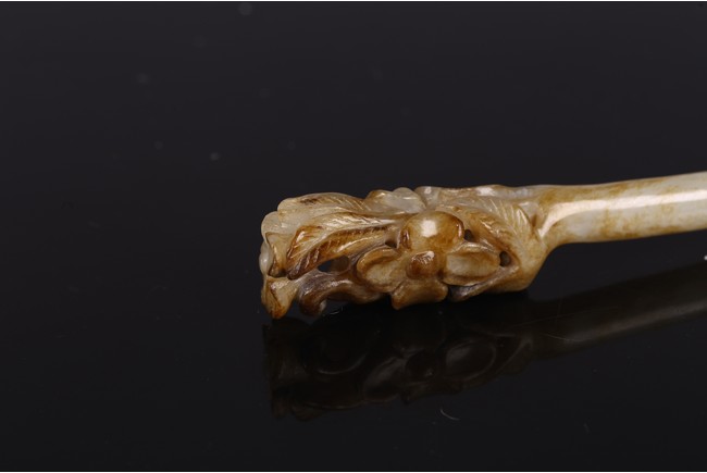 The end of the slender shaft carved and pierced to depict flowers and birds. Ming Dynasty period.