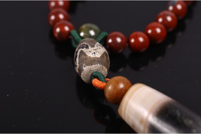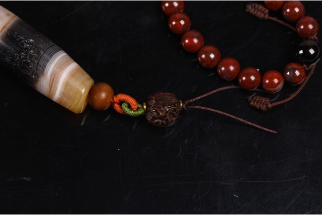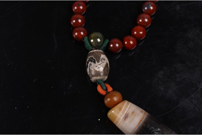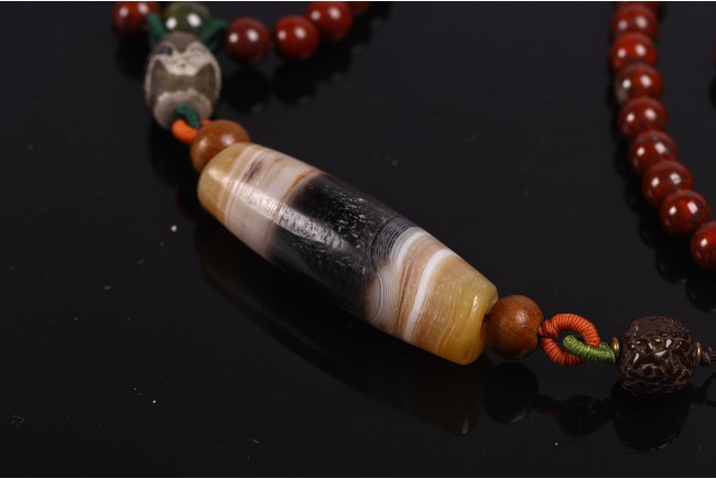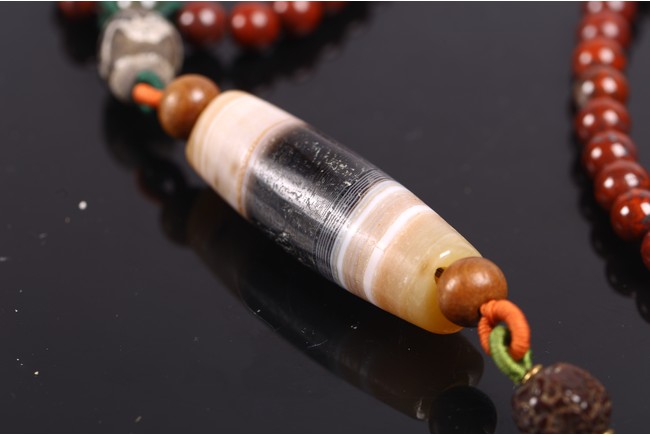 AN ARCHAIC BANDED AGATE BEAD NECKLACE 古纏絲瑪瑙項鍊