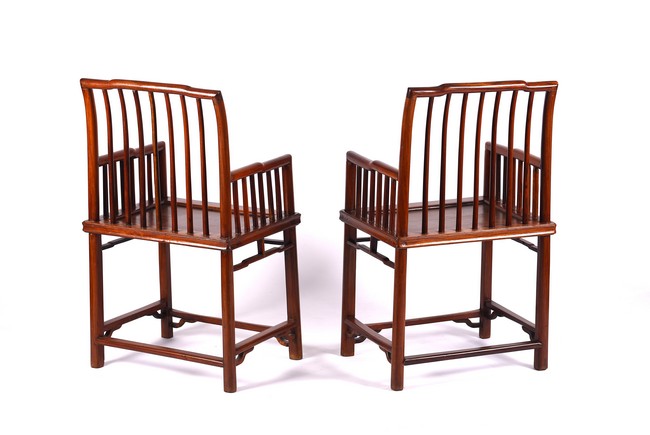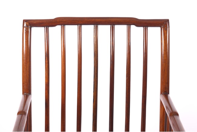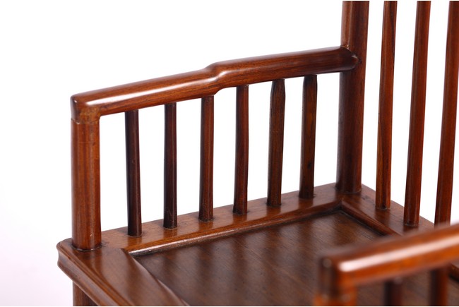 Provenance: Private collection, Los Angeles 來源: 洛杉磯私人收藏 可對比一對相似的硬木玫瑰扶手椅,2009年在蘇富比紐約拍賣,拍品編號33,成交價21250美元 Compare a pair of similar Chinese hardwood Spindle Back Armchairs, sold in Sotheby's New York in 2009, Lot 33, realized price 21250 USD