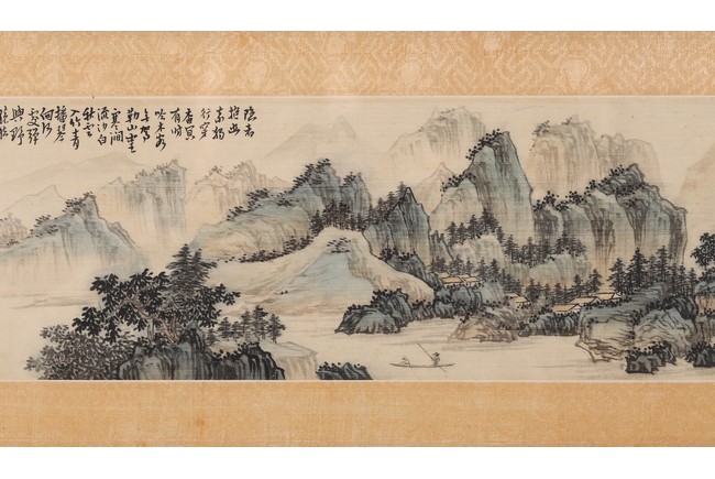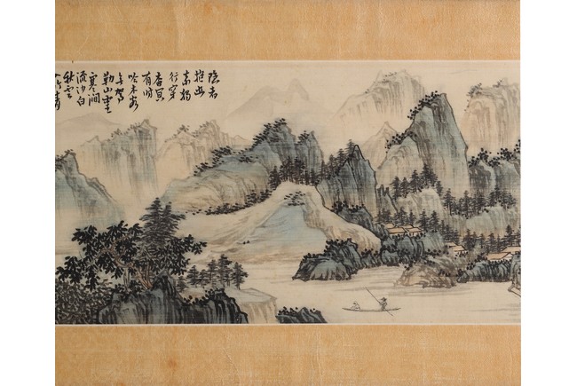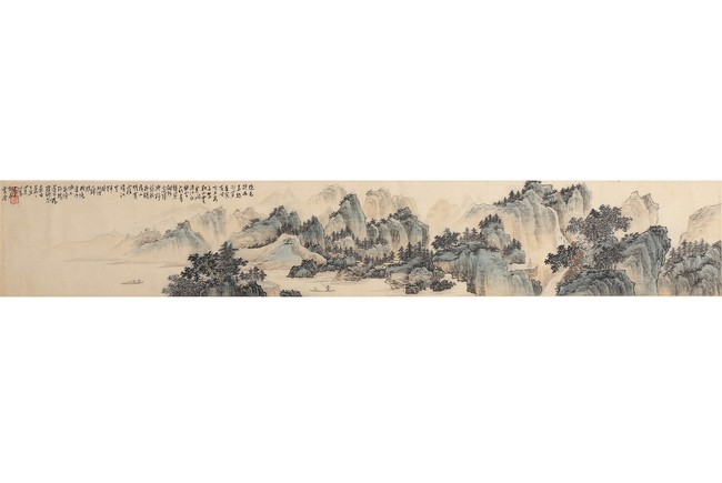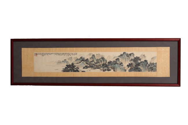 Provenance: From an Important private Chinese painting and calligraphy collection in Northern California. (Lot 1125 - 1127) 來源:北加州重要書畫藝術私人珍藏 (Lot 1125 - 1127) 題識: 隱者報幽素,獨行穿杳冥,有時吟木客,無駕勒山靈。寒澗流沙白,秋雲入竹青。携琴向何處, 彈與野猿聽。石出夜潮落,山明寒霧消,江空千里櫂,村迥一歸樵。 樹色連沙嶼,人家傍野橋。 還同舊棲地,風景日蕭蕭。丁丑四月心畬畫於桐花書屋。鈐印:溥儒之印,舊王孫。說明:“桐花書屋”為溥儒早期齋號,在其留存作品中頗為罕見。
