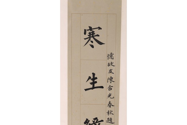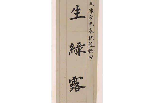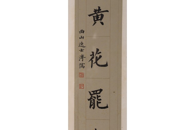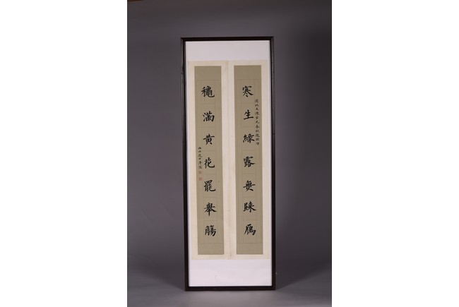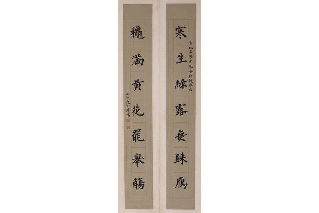 Provenance: From an Important private Chinese painting and calligraphy collection in Northern California. (Lot 1125 - 1127) 來源:北加州重要書畫藝術私人珍藏 (Lot 1125 - 1127) 題識: 憶故友陳含光春秋題聯句。寒生綠露無歸雁,秋滿黃花罷舉觴。西山逸士溥儒。鈐印:溥儒之印,心畬。說明:陳含光(1879-1957),出生於江蘇揚州,是清朝光緒年間的舉人,原名延,後改名含光。他出自淮揚世家,以詩、書、畫著稱,被譽為三絕之一。陳含光在書畫方面展現了卓越的天賦,尤以山水畫為其代表作,作品意境清幽,深遠而充滿文人氣息。他與溥儒、吳昌碩、黃賓虹、林散之、齊白石等人結為至交,共同追求藝術的卓越境地。
