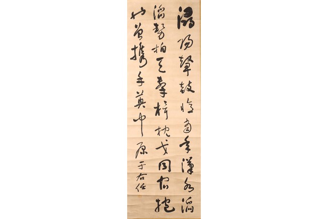 Yu Youren(1879-1964). Hanging scroll. Ink on paper. Calligraphy. Seven Character Poem. Signed Yu Youren with a seal mark.
