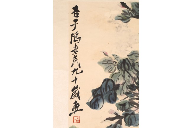 Provenance: From a private collection in Los Angeles, California (Lot 1254 - 1309) 來源:洛杉磯私人藏家收藏 題識: 杏子隖老民九十歲畫 鈐印: 白石