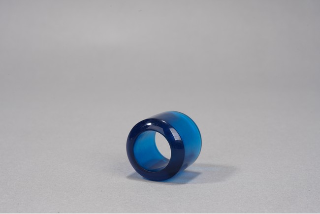 A CHINESE BLUE GLASS ARCHER'S RING 清 藍料扳指