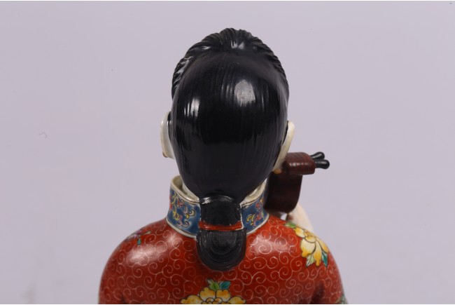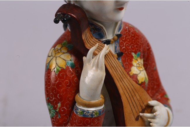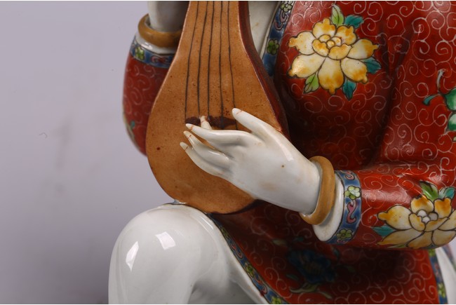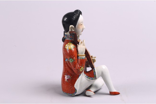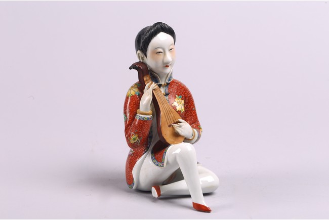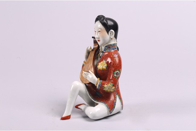 The lady figure is shown wearing revealing clothes and playing pipa, a traditional Chinese musical instrument. Republic period.