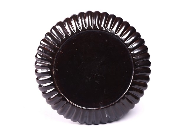 Featuring sides intricately crafted with slender fluted lobes reminiscent of chrysanthemum petals. The entire surface is elegantly lacquered in a lustrous black finish. Yuan Dynasty period.