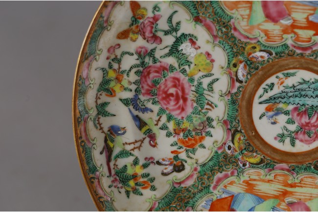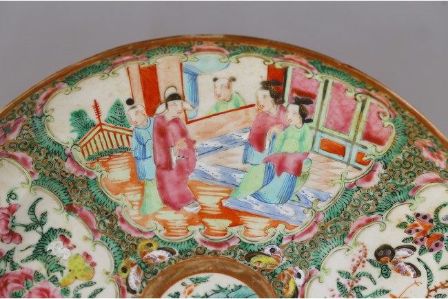 A CANTONESE FAMILLE ROSE DISH 清 廣彩花卉人物故事紋盤