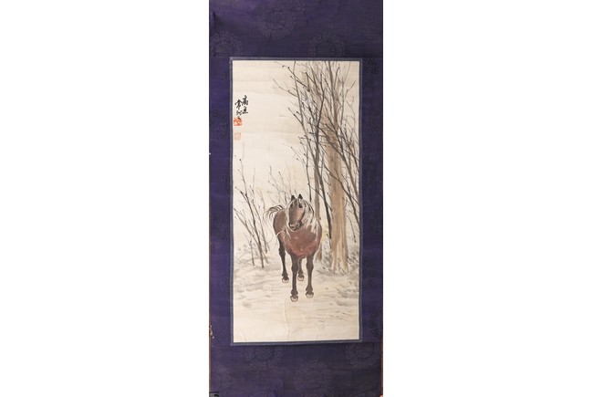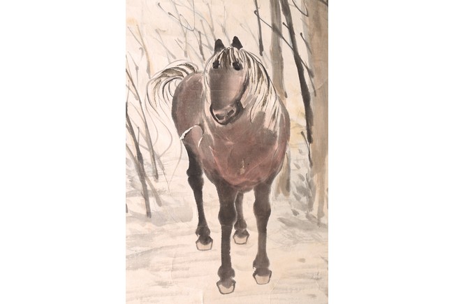 Ink and color on paper. Horse. Signed, with two seal marks of the artist.