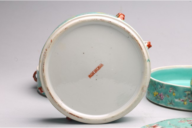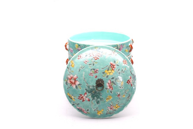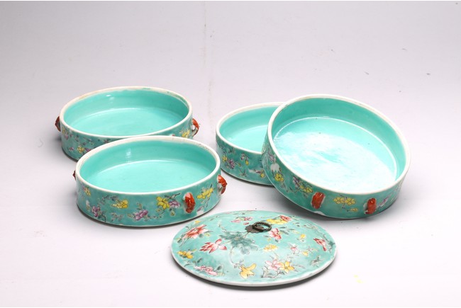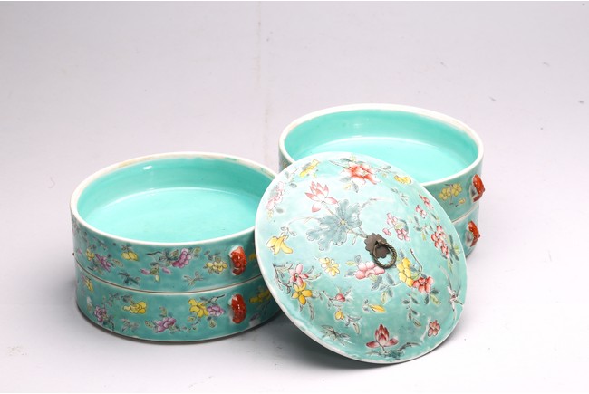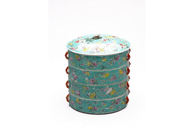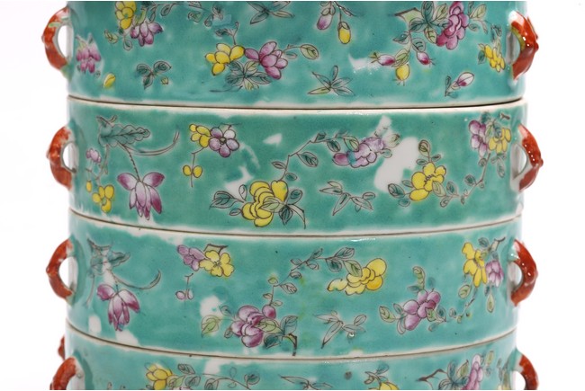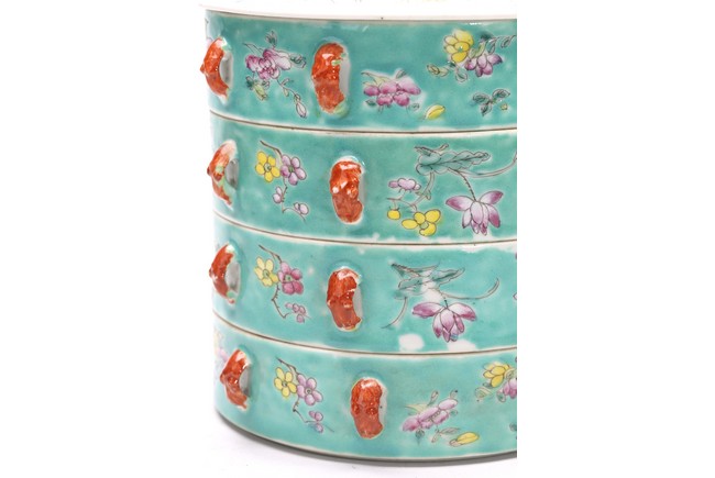 The four tiered stacked box decorated with floral sprays around the body and cover. Qing Dynasty period.