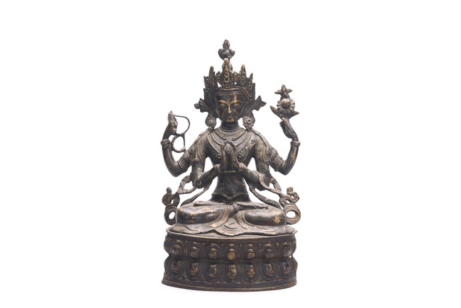 A TIBETAN COPPER ALLOY FOUR ARMED BODHISATTVA 清 銅四臂觀音像