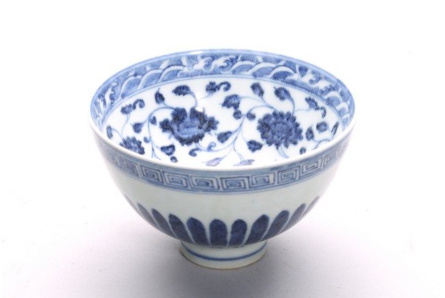 A BLUE AND WHITE 'LOTUS' BOWL 清 青花纏枝蓮紋碗
