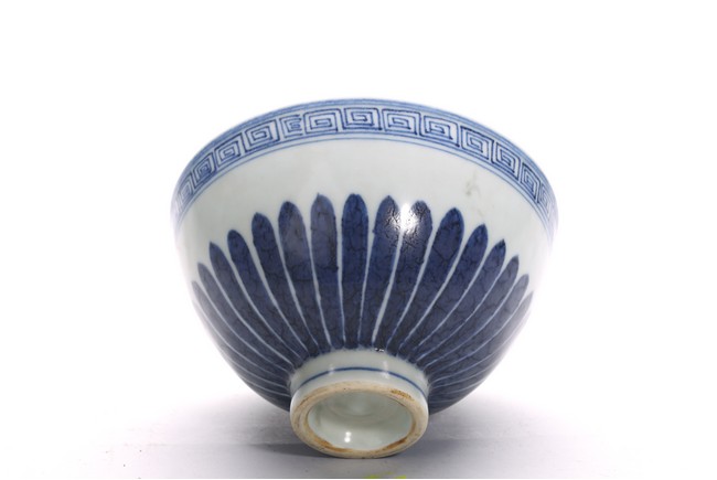 The bowl decorated with lotus scrolls to the interior wall and upright petals around the exterior.