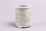 民國 雕瓷白釉花鳥紋筆筒
