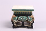 民國 素三彩黑地鏤空獸首底座
