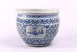 清 青花開光博古紋大缸