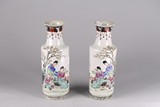 A PAIR OF FAMILLE ROSE 'FIGURINES' VASES